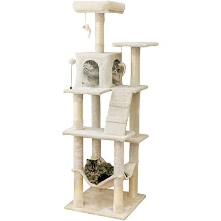 アイリスプラザ キャットタワー 据え置き型 ハンモック おもちゃ付き ベージュ 高さ155cm