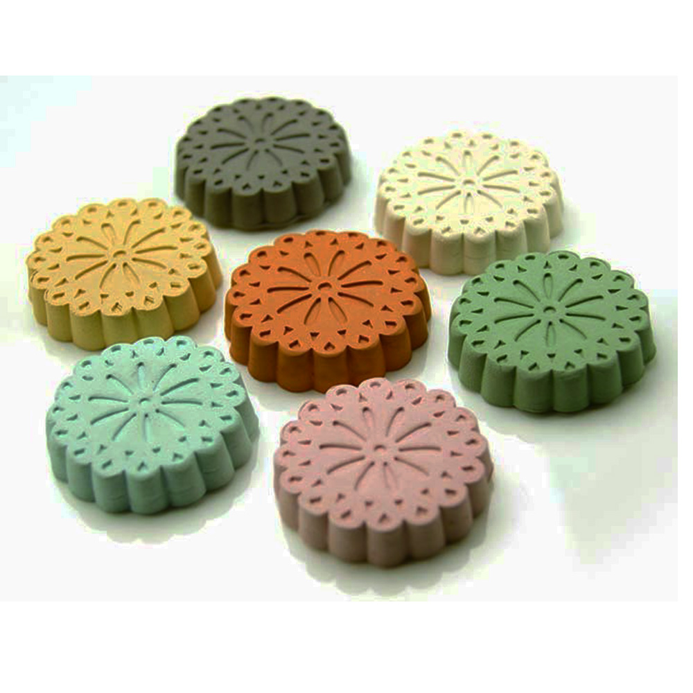 【アロマストーン人気?1】赤瓦の高い吸水性と発散性を活かしたお菓子のようなアロマストーン。ひとつずつ素朴でしっかりしたクラフトパッケージに入っているのでプレゼントにも最適です。